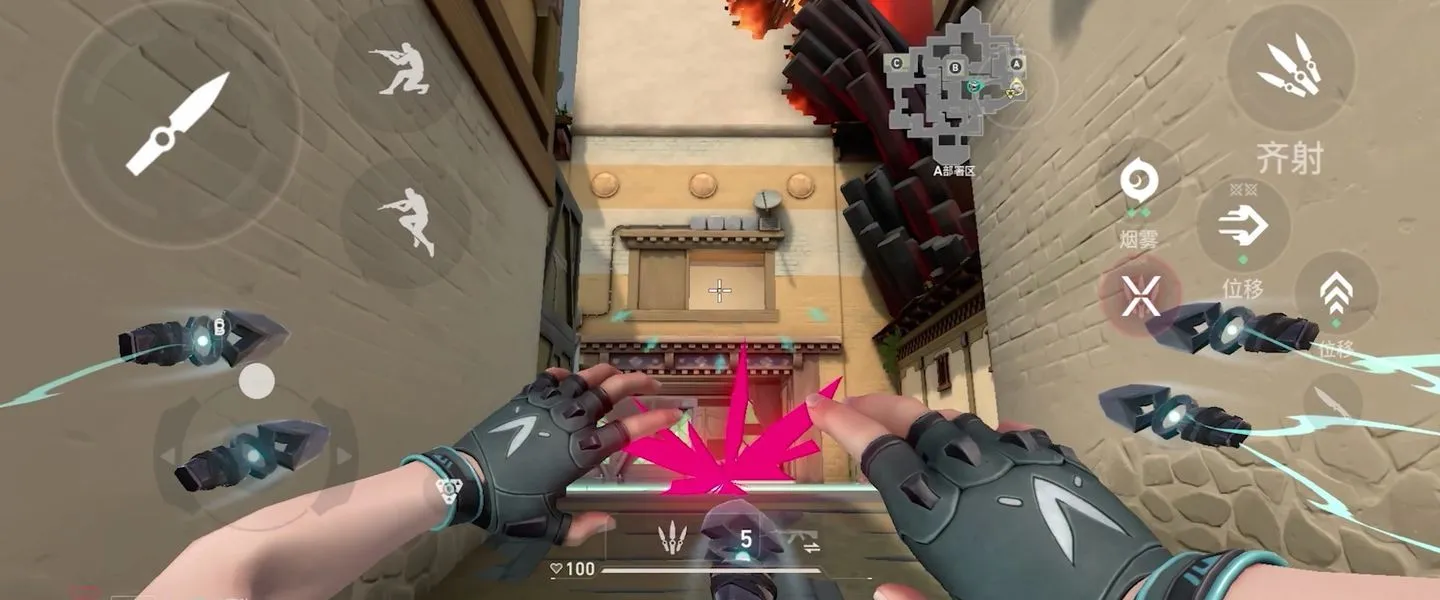 El juego es literalmente el mismo, pero lo que más llama la atención es la interfaz: a la derecha tenemos las habilidades, el salto y el minimapa y a la izquierda, el táctil de movimiento, el agacharse, cuchillo y disparo.